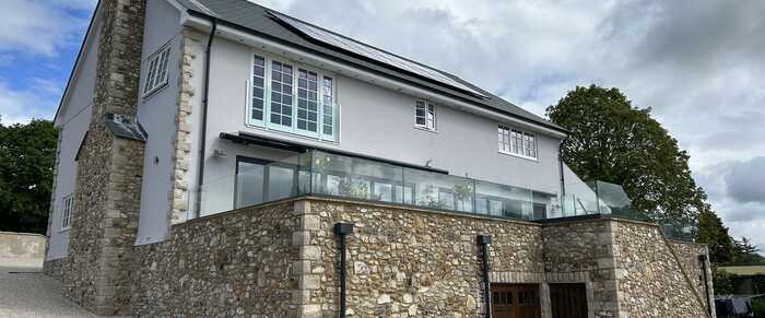 A rare beautiful green field site nestled between houses in Colyford achieved planning for this large modern family home. Boasting impressive eco-credentials, including a ground source heat pump, this home spans three floors as it slopes down the site leading to the carport and a spacious garden with views across to the Axe Estuary.